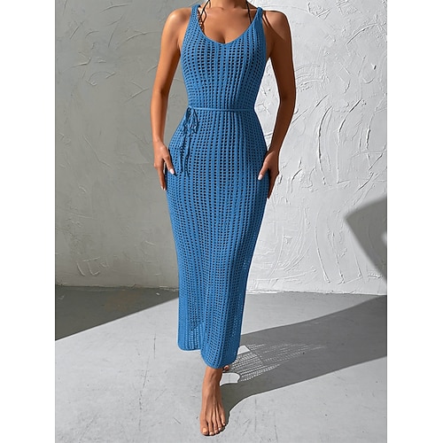 Abito da bagno da donna copertura con ritagli a maglia abbigliamento da spiaggia per le vacanze colore uniforme scollatura a V costumi da bagno senza maniche