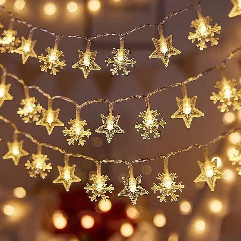 LED Snowflake Elk Star Fairy String Lights 10/20/40LEDs New Year Wedding Garland Lights Battery Powered for Holiday Party Atmosphere Decoration
