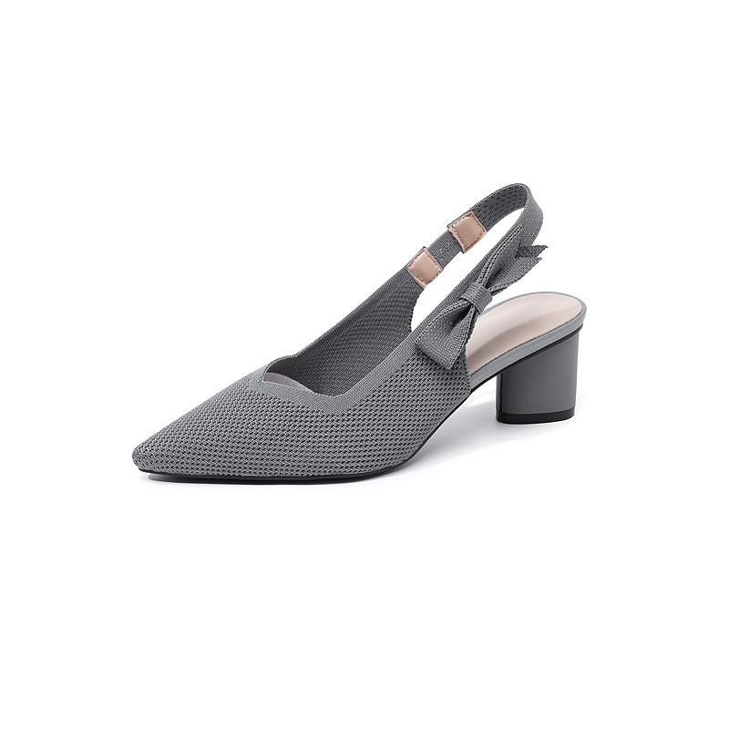 Women's Beige Pointed Toe Knit Slingback Pumps with Bow – Comfortable Mid Block Heel Breathable Shoes for Daily Commuting, Office Work Professional Ladies