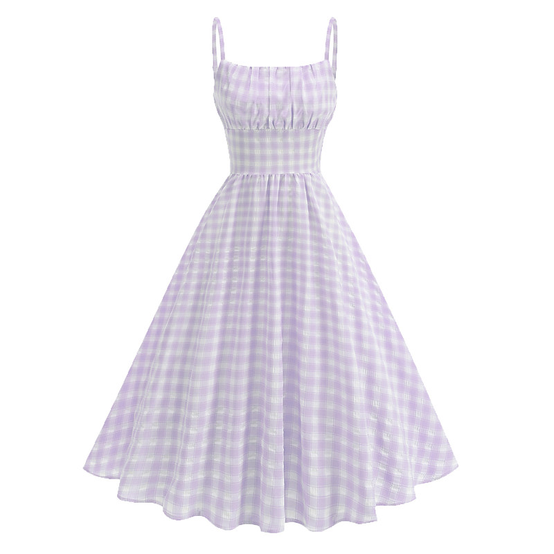 Retro Vintage 1950s Hepburn Midi Dress A Line Dress Flare Dress Spaghetti Straps Plaid Fit Flare Fancy Dress Women's Carnival Valentine's Day Casual Homecoming Retro Theme Party Adults' Dress