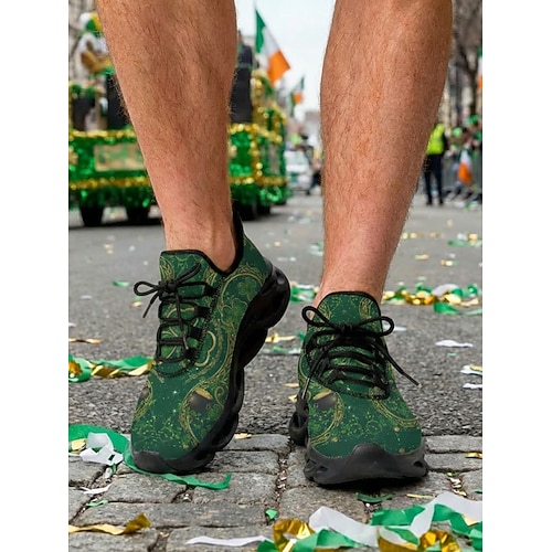 Sneakers da uomo con motivo paisley verde per il giorno di San Patrizio: scarpe sportive alla moda con comoda suola con plateau e cuscino d'aria, perfette per le sfilate eventi festivi
