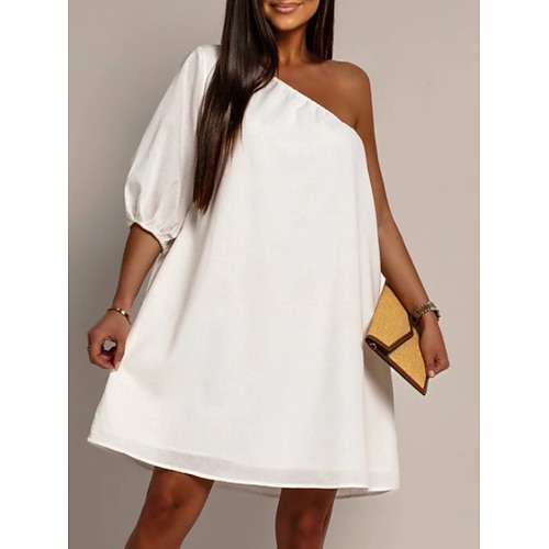 Per donna Mini Abito Abito Bianco Vestito Casual Elegante Moda Moderno All'aperto Vacanza Uscire Vestibilità comoda Semplice Mezza Manica Monospalla Bianco Estate Primavera