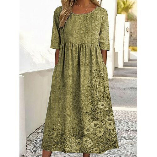 Per donna Abito Midi Vestito Casual Abito Stampato Vintage All'aperto Vacanza Uscire Vestibilità comoda Floreale Grafico Mezza Manica Girocollo Blu Giallo Viola Verde Estate Primavera