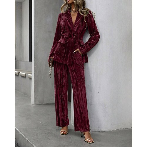 Per donna Vintage Streetwear Velluto Set di Pantaloni Blazer Abiti Manica Lunga Colletto a Camicia Tinta unica Formale All'aperto Vacanza Vino Verde militare Marrone Autunno Vestibilità regolare