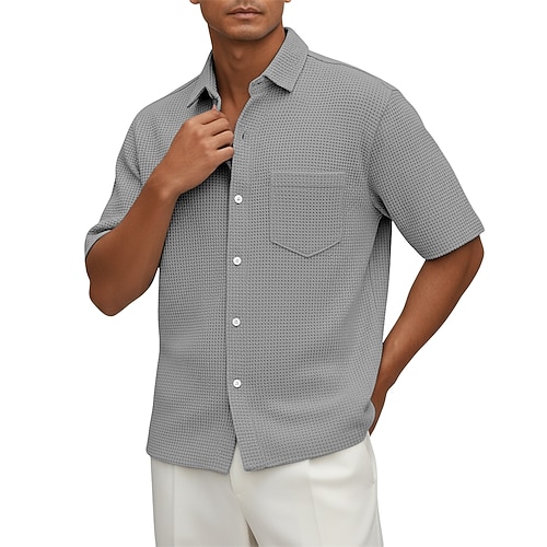 Per uomo Camicia Camicia a nido d'ape Tessuto Camicia casual Camicia con Bottoni Nero Bianco Borgogna Blu marino Verde militare Manica Corta Semplice Colletto a Camicia Casuale Quotidiano Tasca