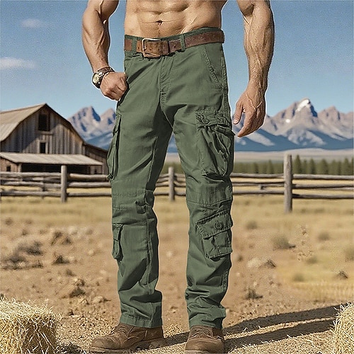 Herren Cargo-Hosen Hose Arbeitshosen Knöpfe Mehrere Taschen Einfach tragbar Volle Länge Outdoor Täglich Campen und Wandern Urlaub Mode Schwarz Armeegrün Unelastisch