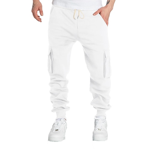 Herren Cargo-Jogginghose Jogginghose Fleecehose Hose Winterhose Kordelzug Tasche Elastischer Bund Einfach Komfort Warm Täglich Ferien Campen und Wandern Mode Klassicher Stil Schwarz Weiß