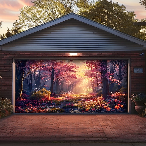Copertura per porta del garage Grande appeso 森林 Vintage 3D Da serata All'aperto Sfondi di ripresa Porta d'ingresso Arredamento per la casa