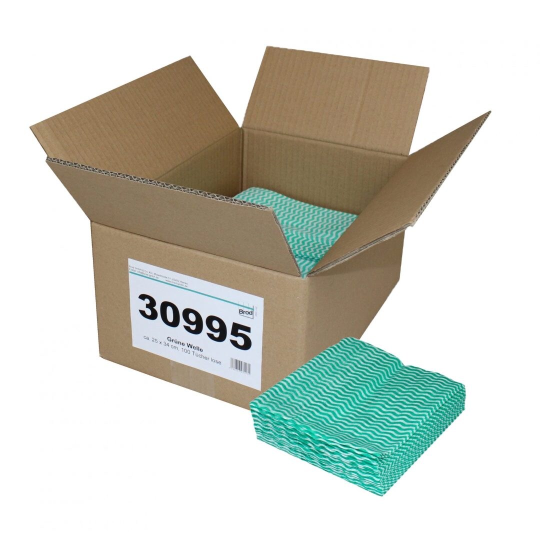 Grüne Welle, Universaltücher mit Textilcharakter, grün-weiß, 55 % Viskose, 45 % Polyester, ca. 25x34 cm, 100 Tücher