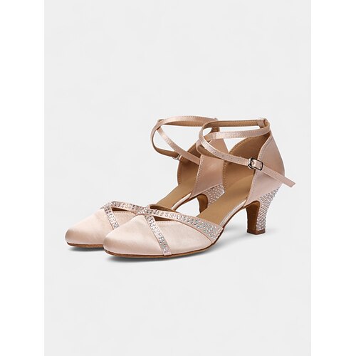 scarpe da ballo da donna in raso color champagne con tacchi in strass – eleganti scarpe da ballo chiuse per matrimonio e valzer