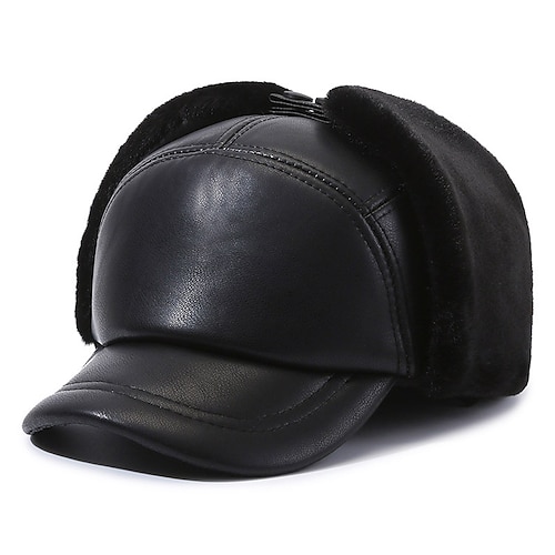 Herren Ohrenklappenmütze Winterledermütze Wintermützen Warme Wintermütze Winter-Baseball-Cap mit Ohrenklappen Schwarz Grau PU-Leder Verstellbar Mode Moderne zeitgenössische Alltagskleidung Festival