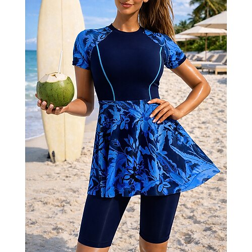 Per donna Top sottomuta Costume da bagno 2 pezzi Stampato Gamba lunga fino al ginocchio Protezione UV Elastico Manica Corta Costume da Bagno Costume da bagno Surf Spiaggia Nuoto Estate