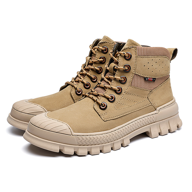 Men's Khaki Ankle Hiking Boots with Thick Rubber Outsole – Breathable Durable Outdoor Footwear for Mountain Climbing, Work and Adventure Travel