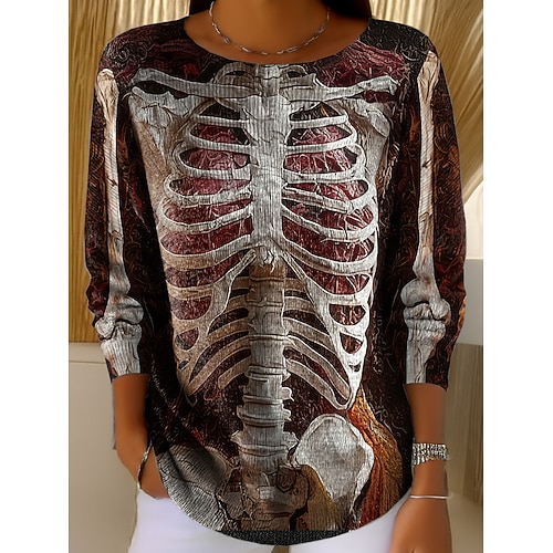 Maglione Donna Scheletro Carino Streetwear Casual Grafica Scheletro Collo A Giro Patchwork Maglione Maniche Lunghe Vestibilità Regolare KnitNero Rosso Autunno Inverno
