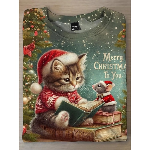 Natale Donne T-shirt Grafica Animale Vintage Moda Stile Maniche Lunghe Collo a Giro Regular Tops Quotidiana Weekend Stampa Grigia Rossa Rossa Blu Navy Blu Verde Scuro Autunno Inverno
