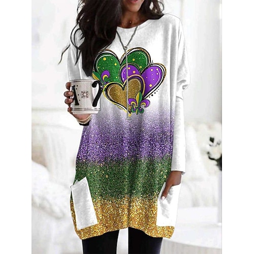 T-shirt da donna a manica lunga collo a giro a maniche lunghe tunica grafica geometrica vintage elegante classico rotondo regolare top stampa quotidiana rossa blu navy verde autunno pre-autunno