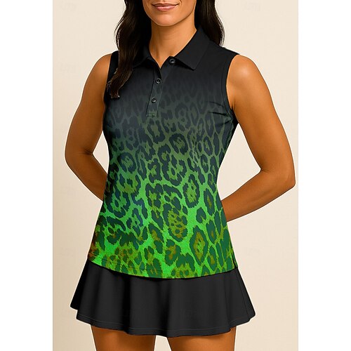 Per donna Leopardo Sfumatura Maglietta sportiva Polo da golf Canotta Maglia da tennis Senza Maniche Floreale Bottoni UPF50 Resistente ai Raggi UV Alta elasticità Traspirante Pallavolo Tennis Golf