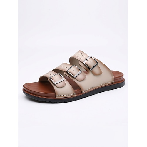 Beige Herren-Sandalen mit Doppelschnalle, offene Zehenpartie, lässige Sommerschuhe, leichte und bequeme Strandschuhe für Inseln und Kreuzfahrten, Urlaub, Freizeit am Meer und warme Tage.