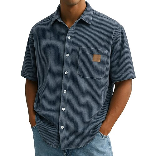 Per uomo Camicia Tessuto Camicia Estiva Camicia casual Camicia di Velluto a Coste Camicia con Bottoni Blu Nero Bianco Rosa Blu marino Manica Corta Semplice Bavero Casuale Quotidiano Tasca
