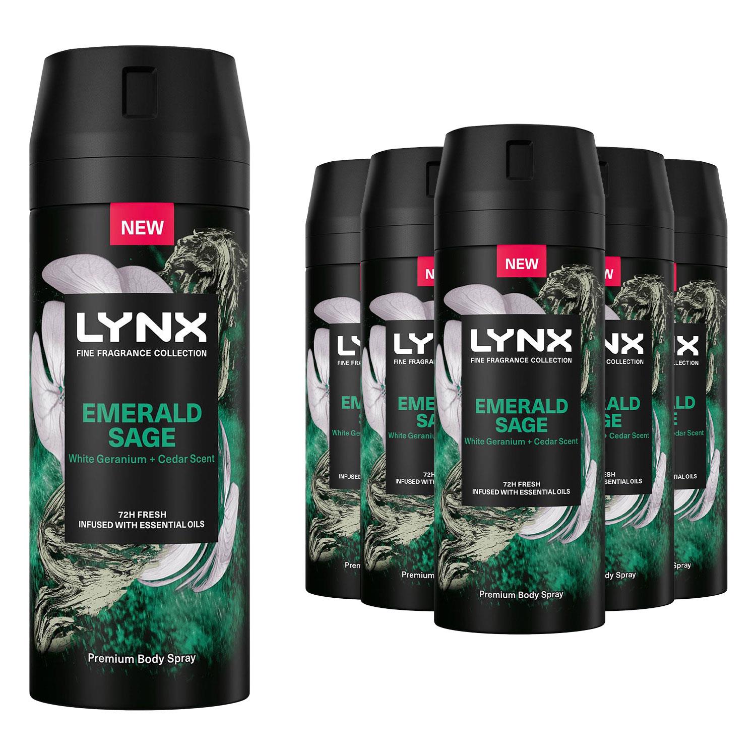 Lynx Mens Fine Fragrance Collection Emerald Sage Deodorant Body Spray 150ml, 24 Pack - Size 150 ml | Lynx Sale | Discount Designer Brands