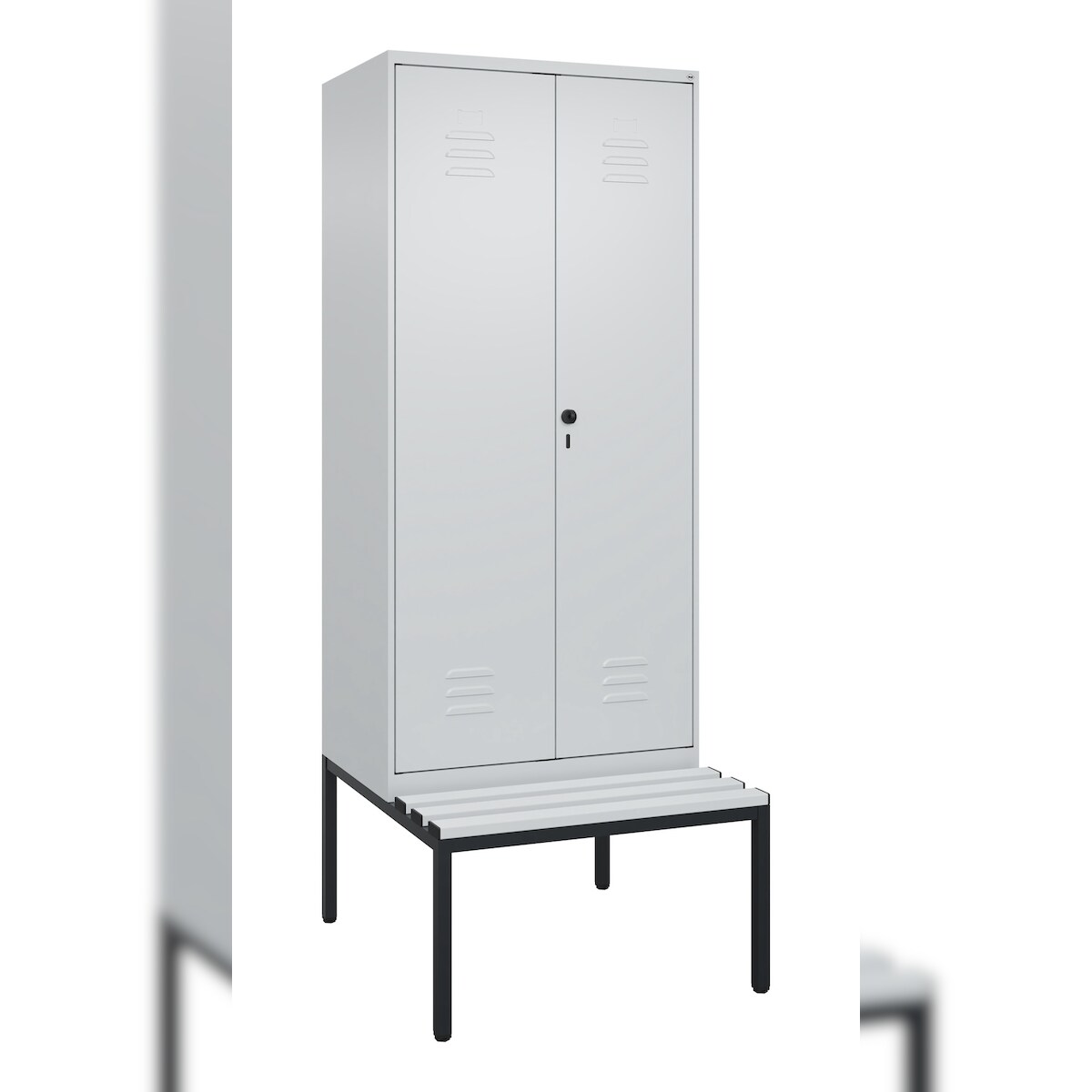 C+P Doppel-Spind Classic PLUS Kunststoff untergebaute Bank 2 Abteile Trennwand HxBxT 212x80x82cm Sicherheitsdrehriegel Hellgrau/Hellgrau von PROREGAL
