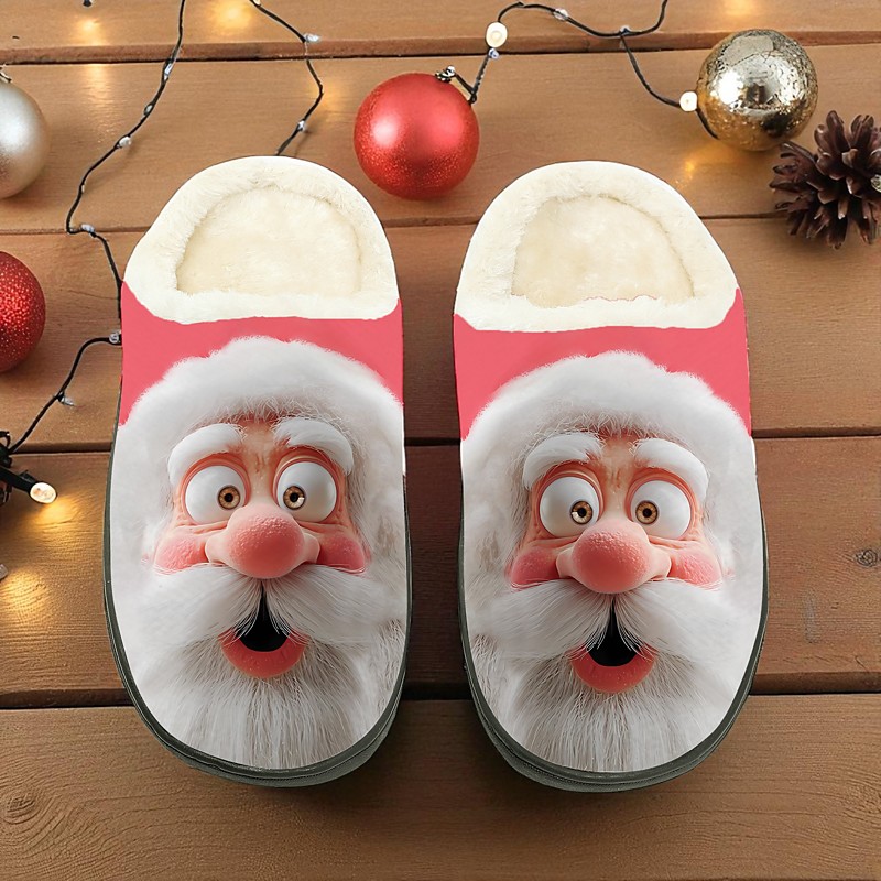 Men's Santa Claus Print Fleece Slippers, Funny Christmas Cartoon Indoor Shoes, Warm Plush House Slippers Perfect for Winter Holidays Gift Giving