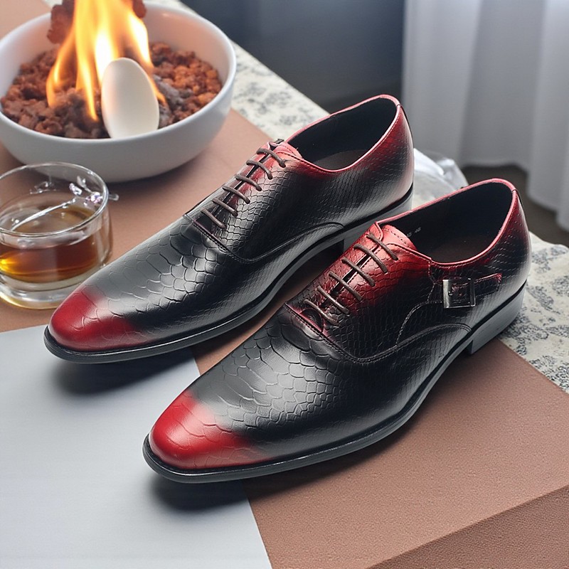 Men's Leather Dress Shoes with Crocodile Texture - Elegant Christmas Style, Perfect for Holiday Parties and Formal Celebrations