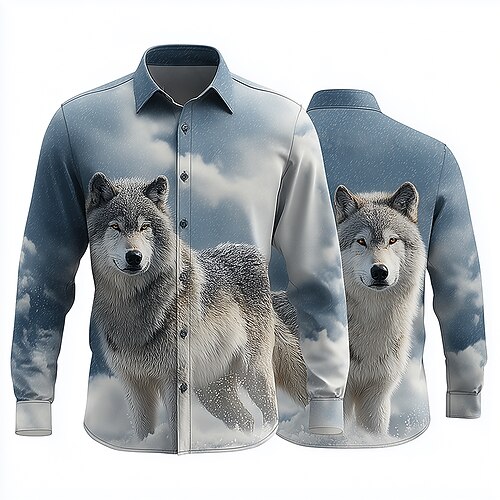 Per uomo Animale Lupo Natura e paesaggi Camicia Camicia con Bottoni Manica Lunga Vintage Retrò All'aperto Casuale Caccia Primavera Autunno Collo ripiegato Stampa 3D camicie con colletto Blu Grigio