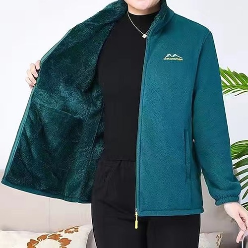 Per donna Giacca con cerniera completa Giacca in pile polare Antivento Caldo con tasche Manica Lunga Gli sport Tinta unica Top Per Palestra All'aperto Corsa Abbigliamento sportivo