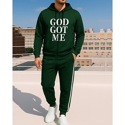 Per uomo Tuta da 2 pezzi Felpa con cappuccio Lounge Felpa con zip intera Cerniera completa con tasca Lettera Completo Abbigliamento Primavera Verde scuro Viaggio Corsa Traspirante Manica Lunga Sport