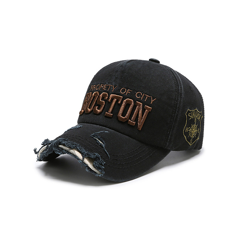 Men's cotton distressed style embroidered baseball cap - casual style, suitable for daily leisure and outdoor activities