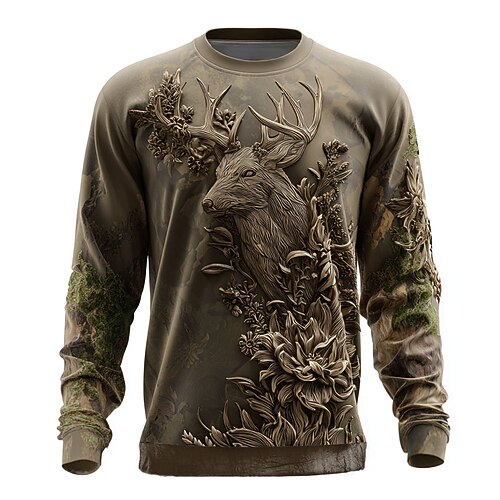 Per uomo Foglia Modello di sollievo Cervo Felpa Casual Manica Lunga Girocollo Vacanza Feste Regalo Borgogna Blu Marrone Verde Girocollo 3D Tutte le stagioni progettista S M L XL XXL XXXL