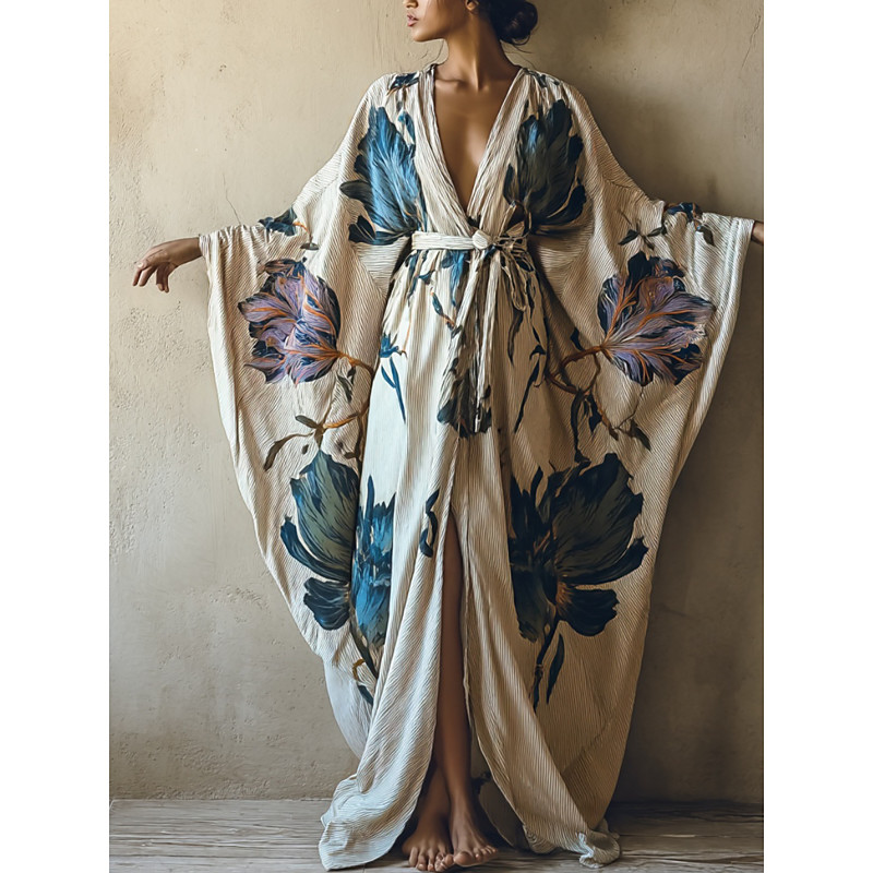Women's Long Dress Maxi Dress Boho Dress Casual Dress Swing Dress Summer Dress Vintage Vacation Daily Beach Regular Fit Floral Long Sleeve V Neck Blue Summer Spring Fall