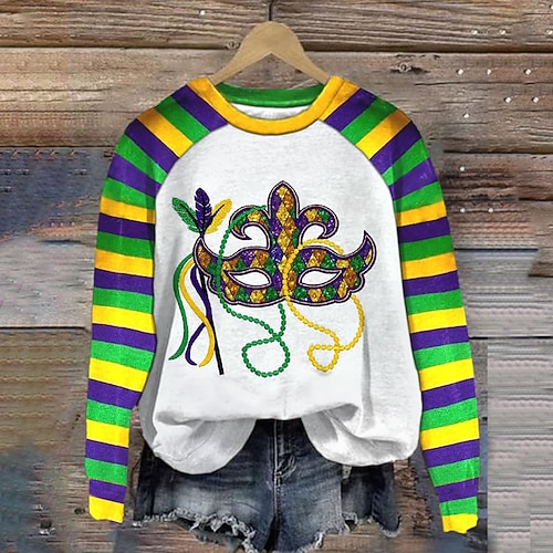 T-Shirt Mardi Gras 2026 Druck Party Lässig T-Shirt Ärmel Grafik für Damen Erwachsene 3D-Druck für Karneval Club Festival