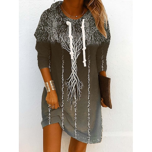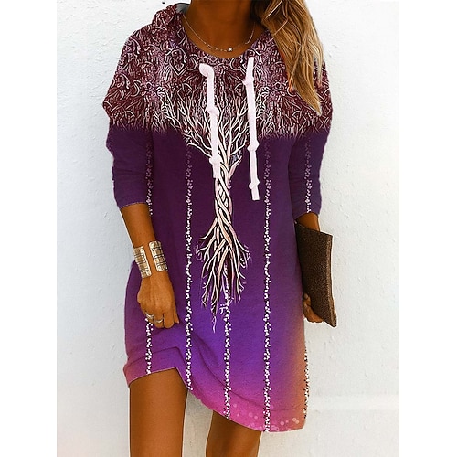Per donna Mini Abito Tubino Abito a Tubino Festa Casual Boho All'aperto Casa Sport Vestibilità regolare Floreale Grafico Astratto Manica Lunga Con Cappuccio Blu Viola Verde Grigio Primavera Autunno