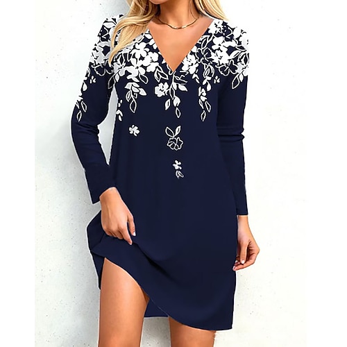 Abito Mini Donna Manica Lunga Girocollo Abito Casuale Abito T-Shirt Abito Tee Abito A-Line Abito Casuale Fit Regolare Grafico Floreale Scollatura Nera Blu Viola Verde Primavera Autunno Inverno