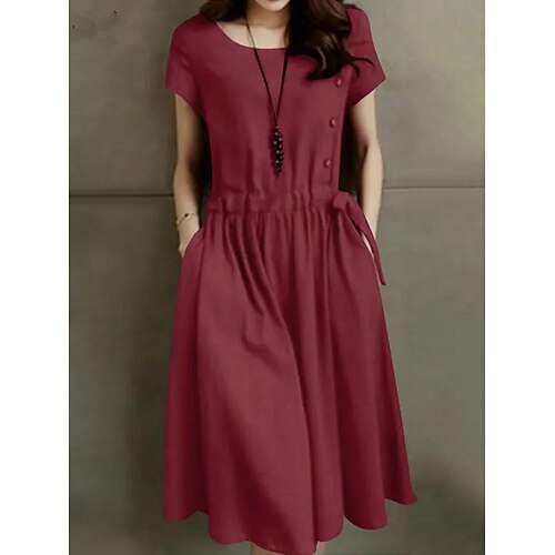 Per donna Abito Midi Abiti ispirati al lino Moda Classico Moderno Quotidiano Uscire Weekend Vestibilità regolare Semplice Manica Corta Girocollo Verde militare Rosso Blu marino Albicocca Estate