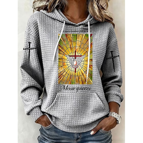Per donna Felpa con cappuccio Grafico Geometrico Caldo Casual Stampa Manica Lunga Con Cappuccio Top Regolari Casuale Streetwear Abbigliamento Quotidiano Stampato Blu Nero Bianco Rosso Grigio Autunno