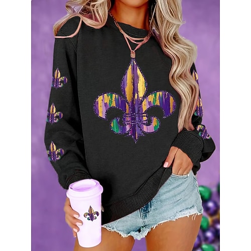 Per donna Felpa Pullover Grafico Classico Casual Manica Lunga Girocollo Top Regolari Abbigliamento da sera Abiti da festa Stampato Marrone scuro Nero Bianco Giallo Viola Primavera Autunno