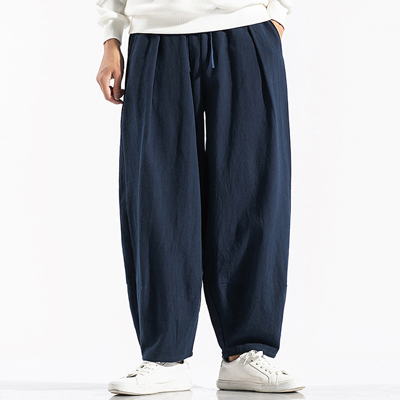 Men's Linen Pants Trousers Summer Pants Beach Pants Pocket Drawstring Elastic Waist Plain Comfort Breathable Outdoor Daily Stylish Hip Hop White Blue