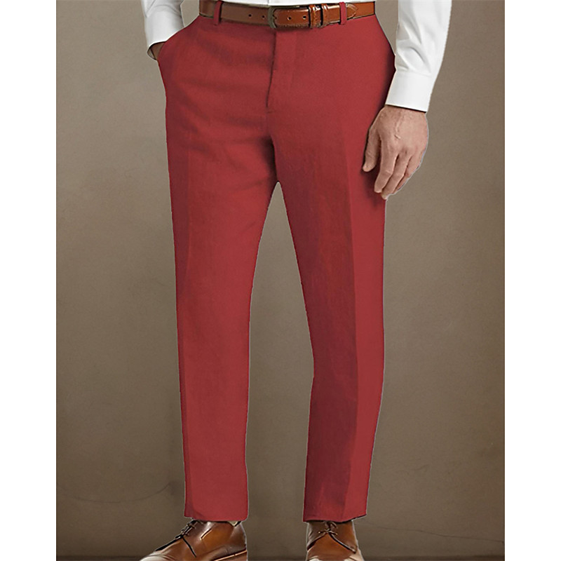 Men's Dress Pants Trousers Pocket Straight Leg Plain Wedding Office Work Cotton Blend Chic Modern Formal White Wine High Waist Micro-elastic