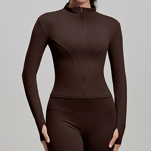 Per donna Tinta unita Giaccia da corsa Giacca da esterno Giacca sportiva Estate Cerniera completa Snello Manica Lunga Asciugatura Rapida Leggero Elastico Traspirante Palestra Corsa Esercizio Nero