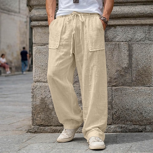 Per uomo Pantaloni di Lino Pantaloni Pantaloni Estivi Pantaloni da Spiaggia Coulisse Tasca Elastico in vita Semplice Comodità Traspirante Vacanza Quotidiano Ferie Hawaiano Boho Nero Bianco