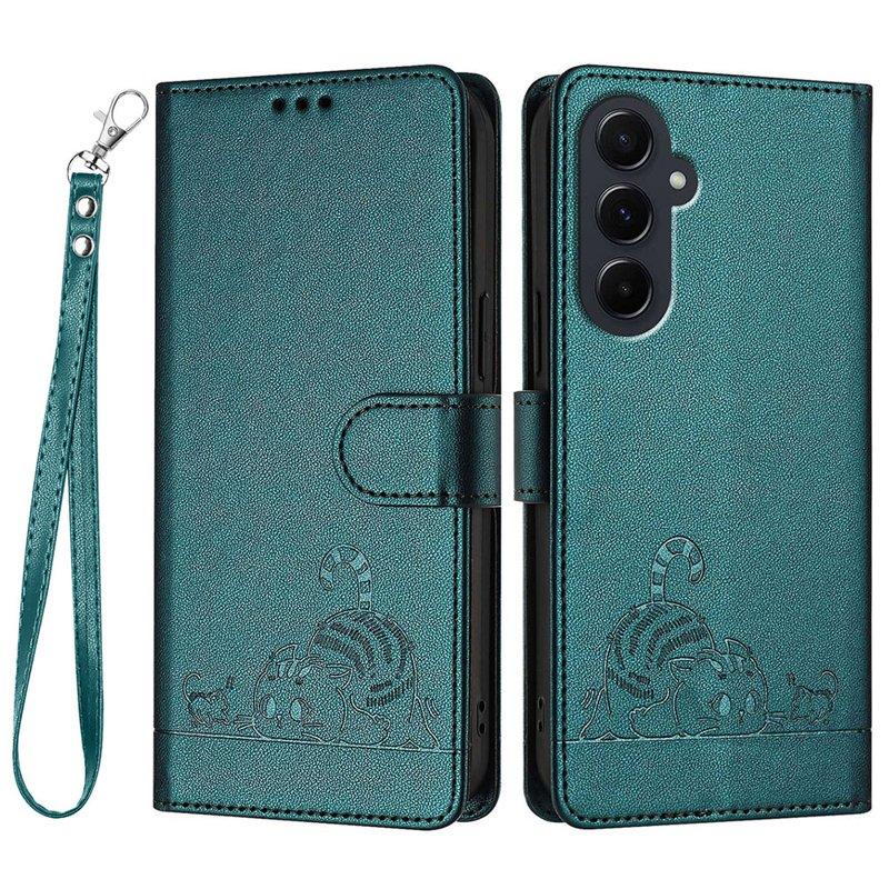 Samsung Galaxy A57 Plånboksfodral Konstläder Blommor - Grön