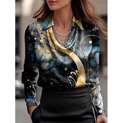 Per donna Camicia Floreale Grafico Elegante Casual Manica Lunga Scollo a Cascata Top Regolari Lavoro Abbigliamento da sera Quotidiano Arricciato Drappeggiato Rosso Blu Viola Verde Grigio Estate