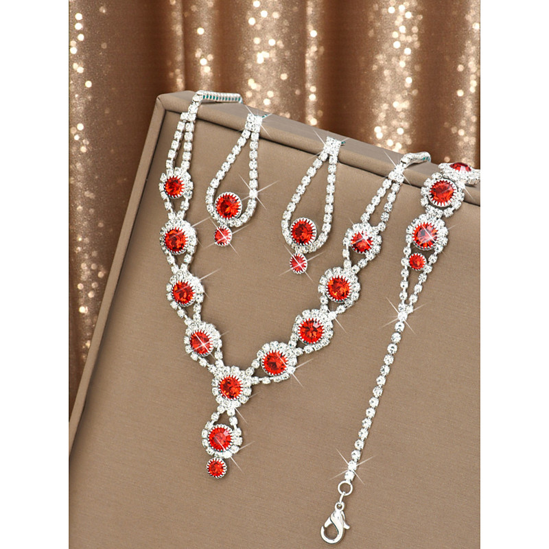 Women's Pink Crystal Jewelry Set - Sparkling Necklace, Bracelet and Earrings with Rhinestone Accents for Elegant Party and Evening Wear