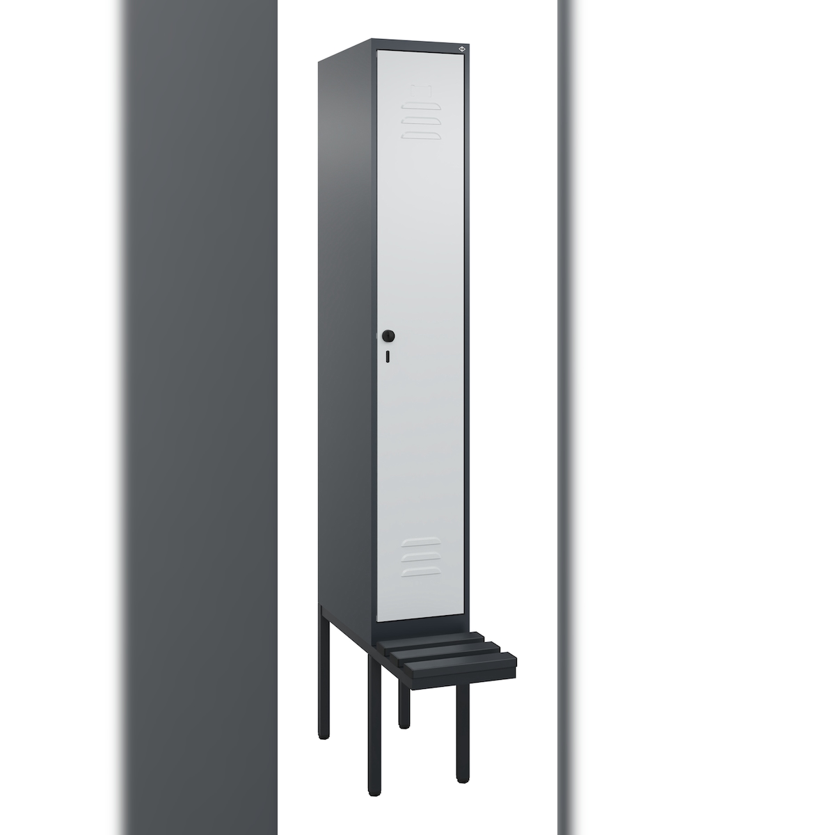 C+P Spind Classic PLUS, Kunststoff schwebende Sitzbank, 1 Abteil, HxBxT 212x30x82cm, Sicherheitsdrehriegel, Anthrazit/Hellgrau von PROREGAL