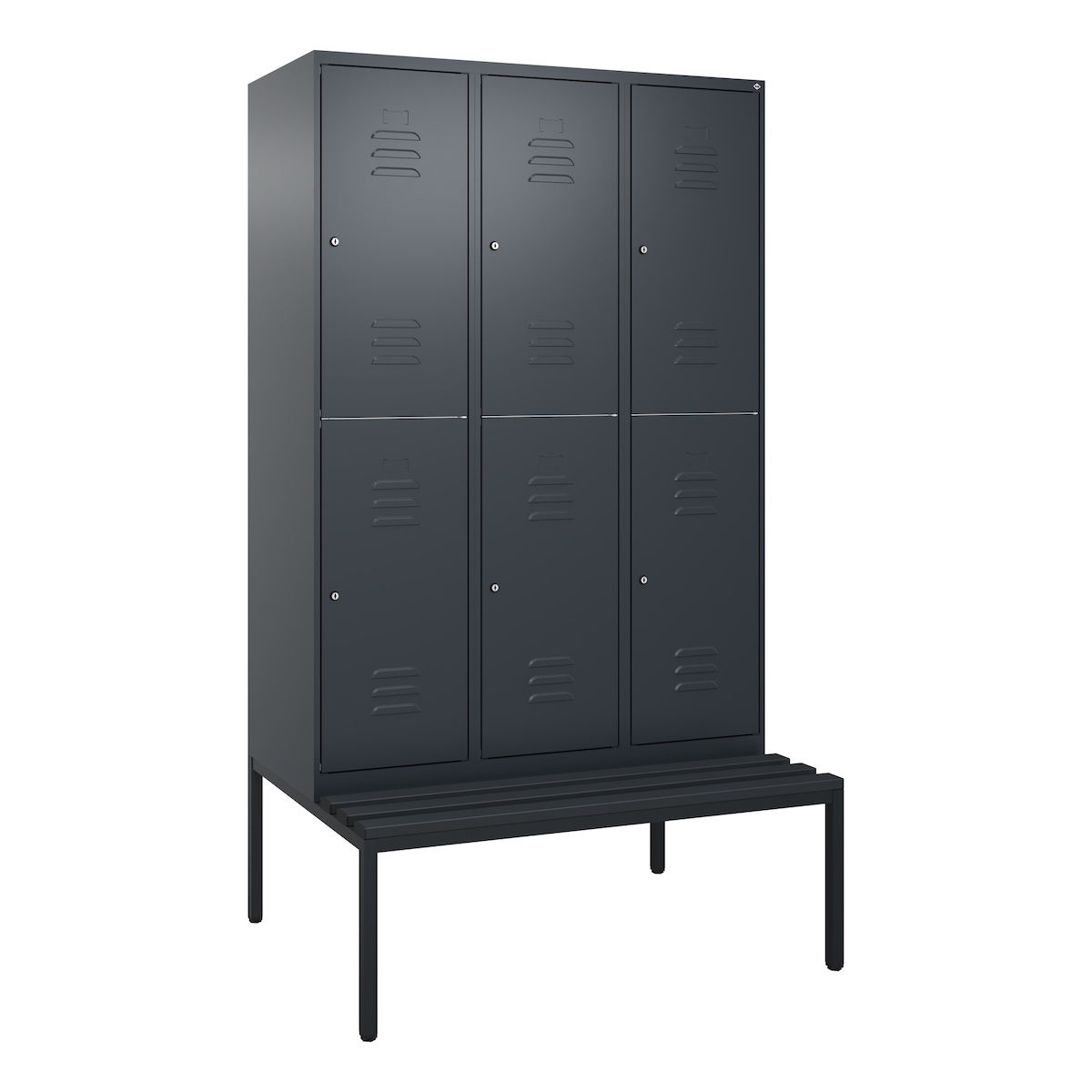 C+P Spind Classic PLUS, Kunststoff untergebaute Sitzbank, 6 Abteile, HxBxT 212x120x82cm, Zylinderschloss, Anthrazit von PROREGAL