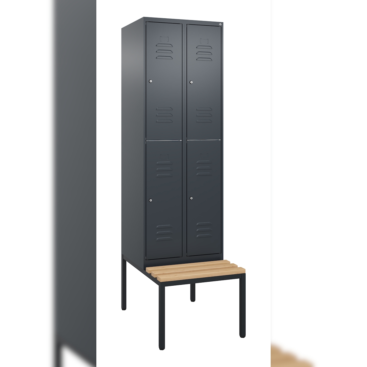 C+P Z-Spind Classic PLUS, Kunststoff untergebaute Sitzbank, 2 Abteile, HxBxT 212x30x82cm, Sicherheitsdrehriegel, Anthrazit/Hellgrau von PROREGAL