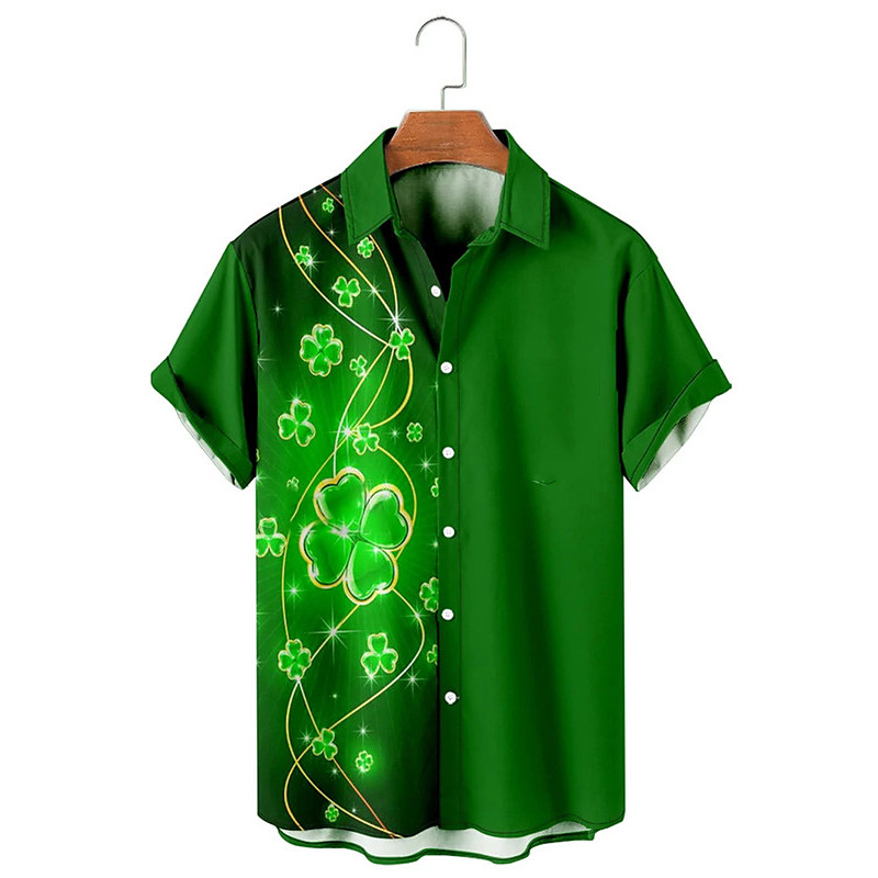 St.Patrick's Day Four Leaf Clover Plaid / Check Casual Men's Shirt Daily Wear Going out Weekend Autumn / Fall Turndown Short Sleeves Red, Dark Green, Green S, M, L 4-Way Stretch Fabric Shirt St.